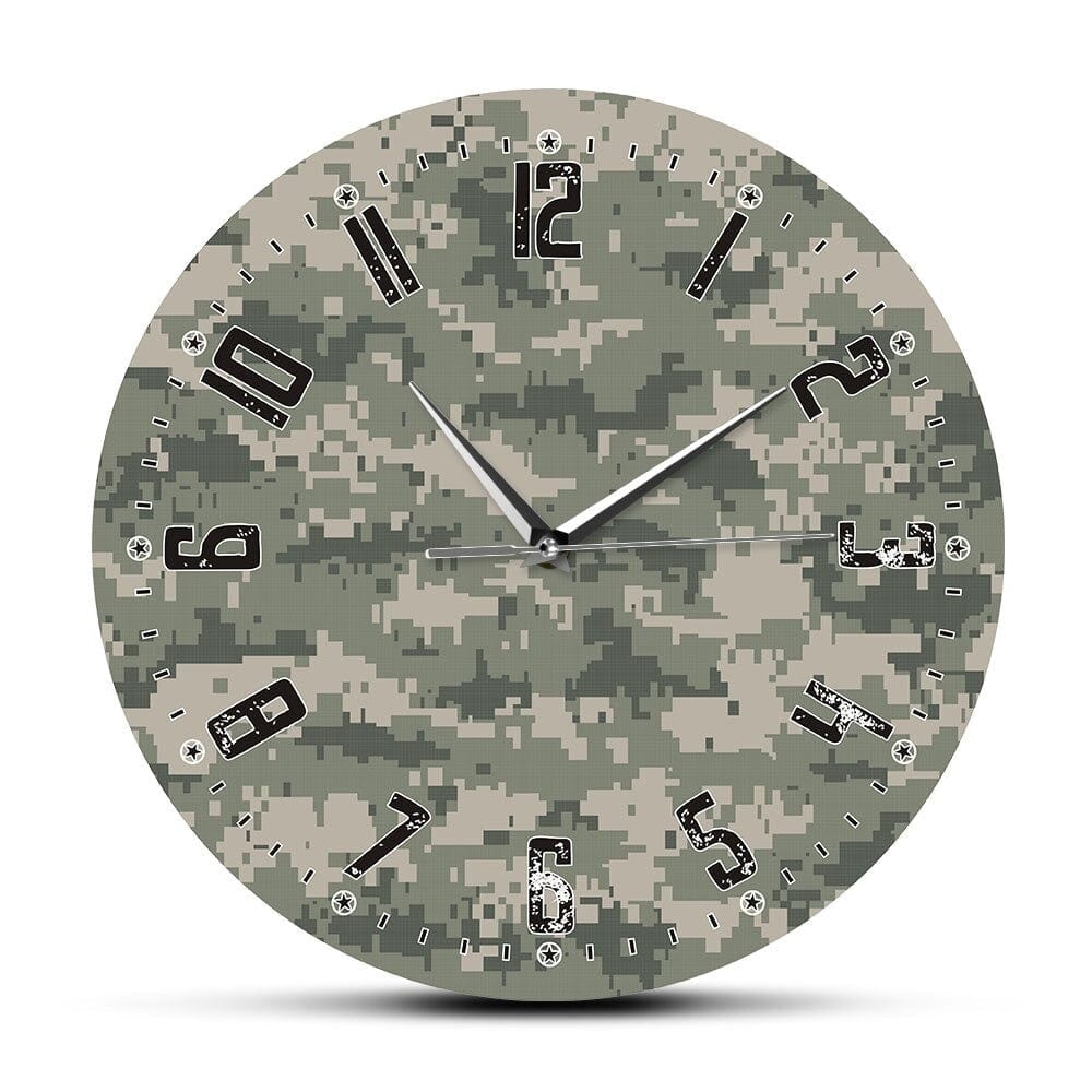 Chaque détail de cette horloge murale camouflage a été pensé pour conjuguer lisibilité, style et robustesse. Elle s’adresse à celles et ceux qui refusent les murs fades et les objets sans âme. Dans un monde où la décoration est souvent standardisée, elle impose un rythme différent – celui d’une horloge qui a quelque chose à dire.