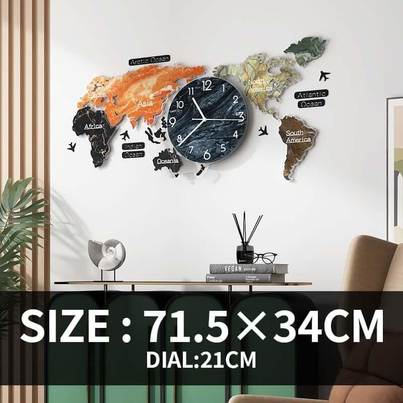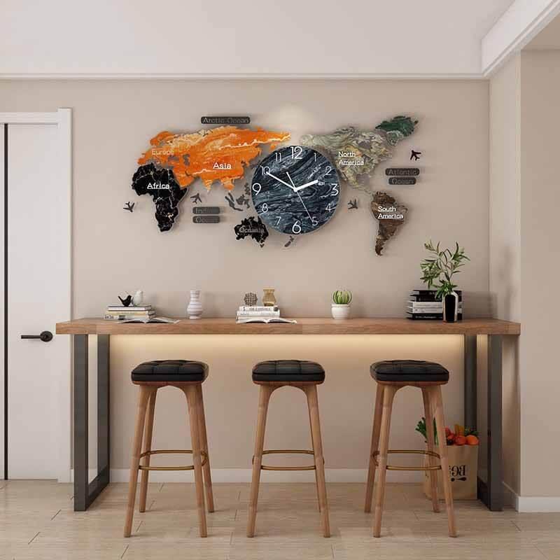 Idéale pour les passionnés de belles mécaniques comme pour les amateurs de design intérieur, cette horloge murale design impose un style fort — un équilibre subtil entre rigueur du cadran et liberté du graphisme monde. Son mécanisme à quartz de précision en fait un pièce fiable autant qu'émotive.
