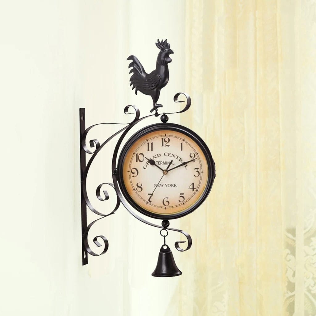 Horloge de gare vintage chiffres arabes double face coq